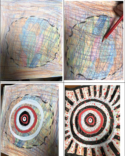 상담실 선생님이 그럼 어떻게 하면 좋겠냐고 이 색칠 위에 무언가 표현하려면 무엇을 하고픈지 물으신다. 하얀 색을 올리고 싶다고 하였다. 하얀 원 한 개가 내가 원하는 위치에 그려졌다. 마음에 든다. 다른 원하나가 더 그려지고 나와 선생님과 함께 하나씩 그려졌다.
