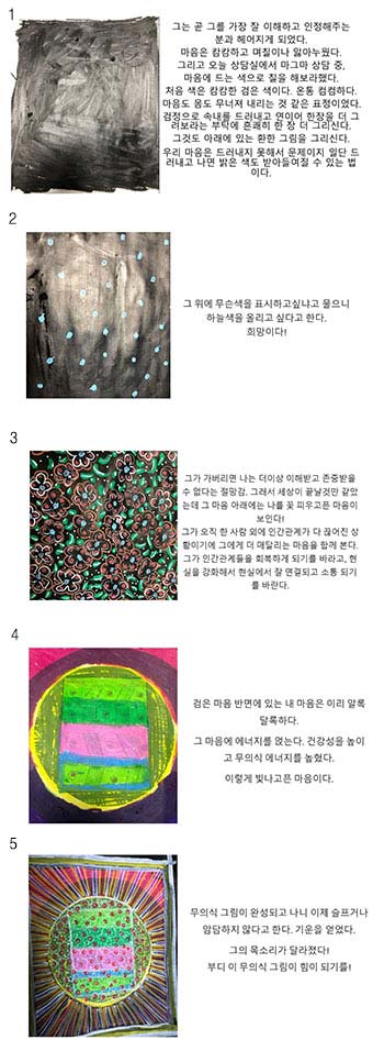 무의식 그림이 완성되고 나니 이제 슬프거나 암담하지 않다고 한다. 기운을 얻었다.